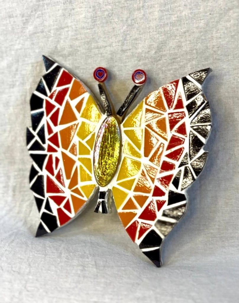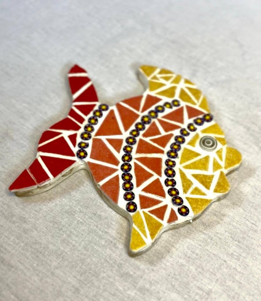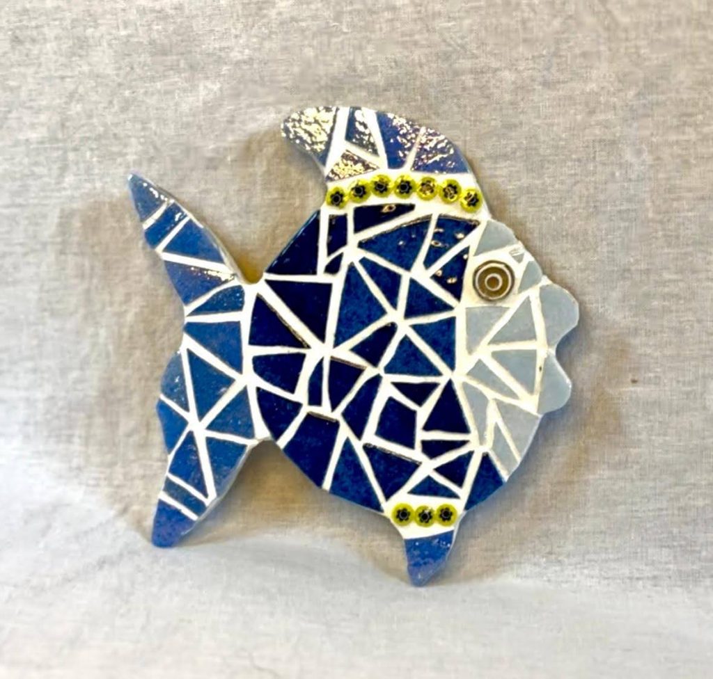 Différents motifs d’animaux rigolos de différentes couleurs réalisés avec des émaux de Briare et Millefiori. A suspendre ou avec aimant magnétique (au choix). Dimensions 20×15 cm.