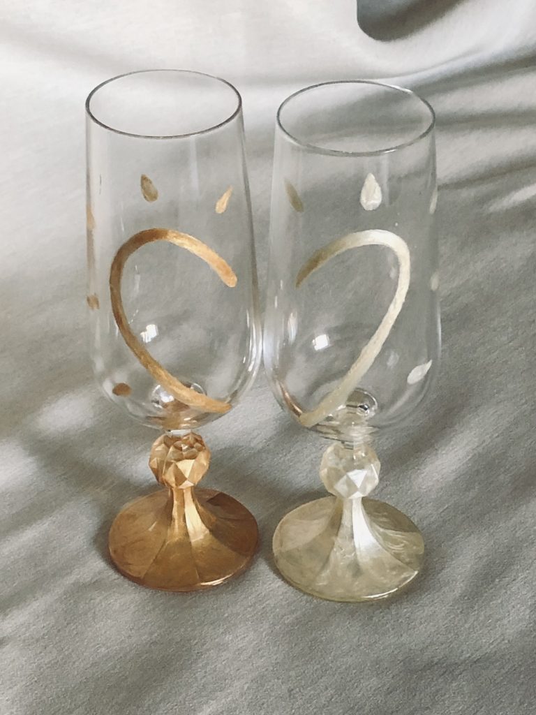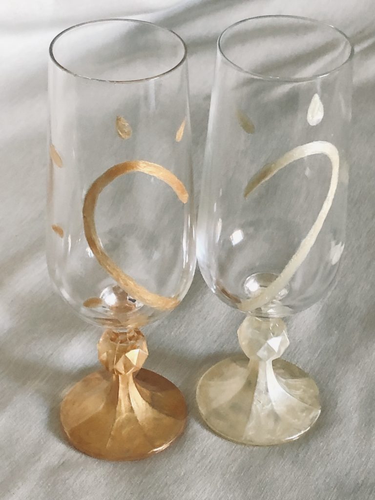 Lot de 2 flûtes de champagne peintes à la main avec des motifs floraux mais aussi des coeurs pour les amoureux de la vie !