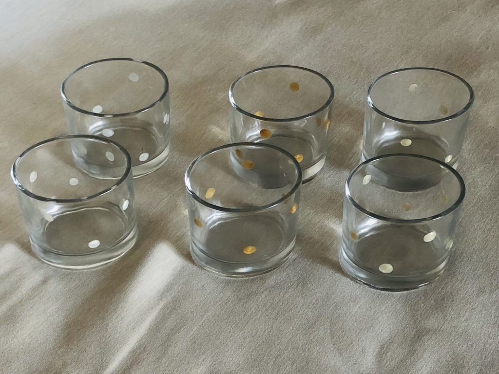 Lot de 6 verrines peintes à la main avec de la peinture sur vitrail. Idéales pour égayer vos apéros, entrées ou desserts de manière festive 😉